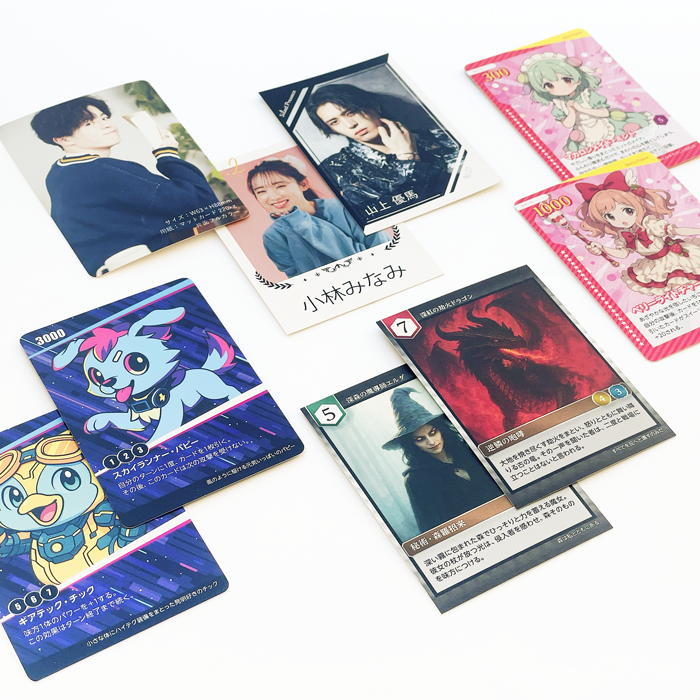 配布用・販売用のカードはもちろん、推し活カード・イベントカード・同人用カードなど、幅広い用途に対応したオリジナルトレーディングカード印刷(オリジナルトレカ印刷)です。