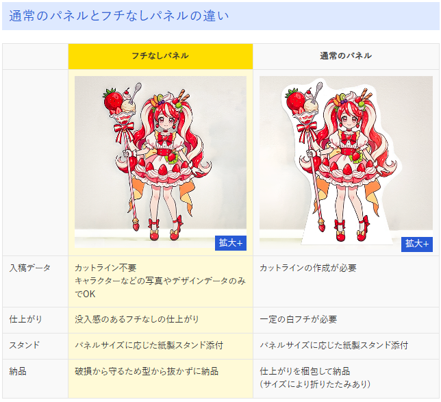 一般的なパネル印刷にある「白いフチ(余白)」を完全になくした、プロ仕様の等身大パネル作成サービスです。「フチなしフラスタ」や「イベント展示」において、キャラクターや人物がそこにいるような圧倒的なクオリティを実現します。面倒なカットパス(切り抜き線)の作成は不要です。お気に入りの画像を送るだけで、オペレーターが滑らかな輪郭に仕上げます。
