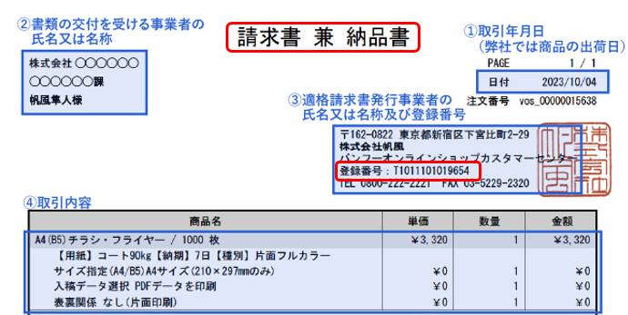 ※ インボイス番号は「請求書兼納品書」に記載 しております(領収書には記載しておりません)