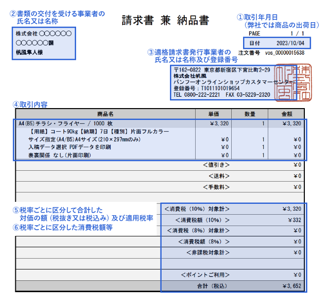 バンフーオンラインショップでは「請求書 兼 納品書」は商品に同梱いたしません。