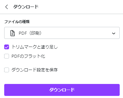 ご入稿の際は、Canvaからデータを PDF形式 でダウンロードをお願いいたします。