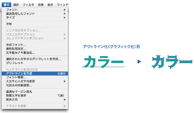 アウトライン化することにより、書体のない環境でも形を崩さず印刷することができます。