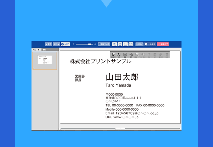 デザインを選んで、文字打ち替えや編集がWebブラウザ上で簡単にできます。