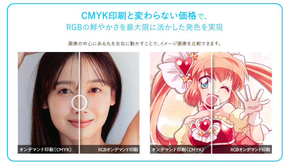 RGBオンデマンド印刷は、最新のデジタル印刷機により、従来のCMYKと変わらない価格でRGBデータの印刷を実現。