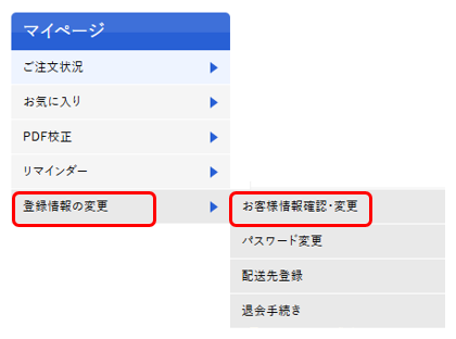 会員登録内容の変更はマイページ >「登録情報の変更」>「お客様情報の確認・変更」よりお手続きいただけます。