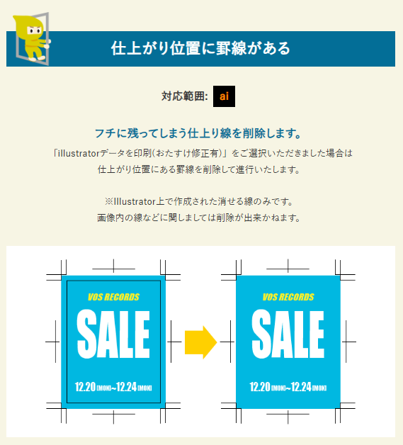 各修正サービスをご用意しています。ぜひご利用ください!【無料サービス】データチェックで、修正可能な内容に関してデータ修正をさせていただくサービスです。【有料サービス】カットパスのデータやホワイトインク用の白版データを有料で作成させていただくサービスです。
