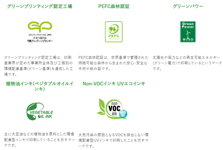 植物油インキにつきましては、別途お見積りにて承っております。恐れ入りますが、お見積りフォームよりご依頼ください。担当者より改めてご連絡申し上げます。※その他の環境対応印刷につきましてもお見積り可能です。グリーンプリンティング認定工場グリーンパワーNon-VOCインキ UVエコインキ