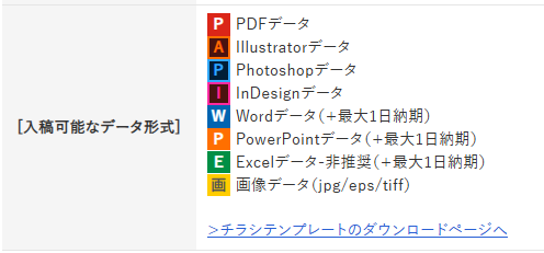 各商品ページの「入稿可能なデータ形式」